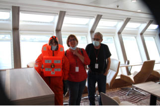 mussten. Da hat man uns erklärt, wie man den Überlebensanzug anlegt, die Schwimmweste, und wo wir dann im Notfall von Bord kommen. Als