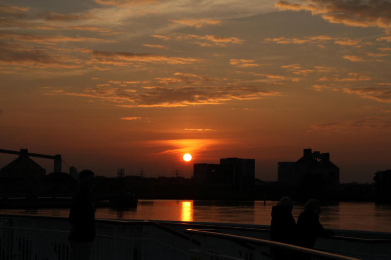 an unser Schiff. Die Bilder die ihr dann seht, sind an Bord, an Deck, beim Auslaufen, sowie die Fahrt die Elbe hoch zur Nordsee. In Cuxhaven