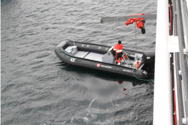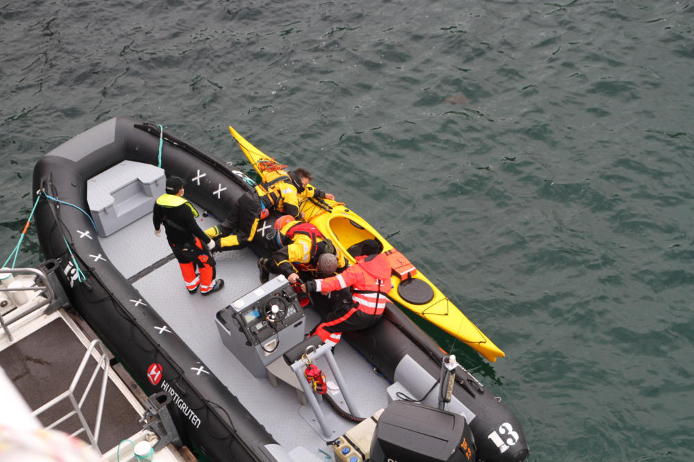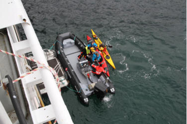 wird das Kajak an Bord gezogen