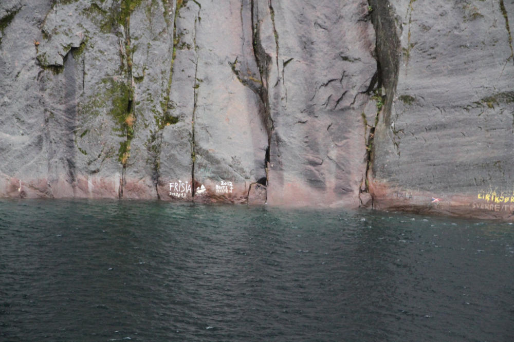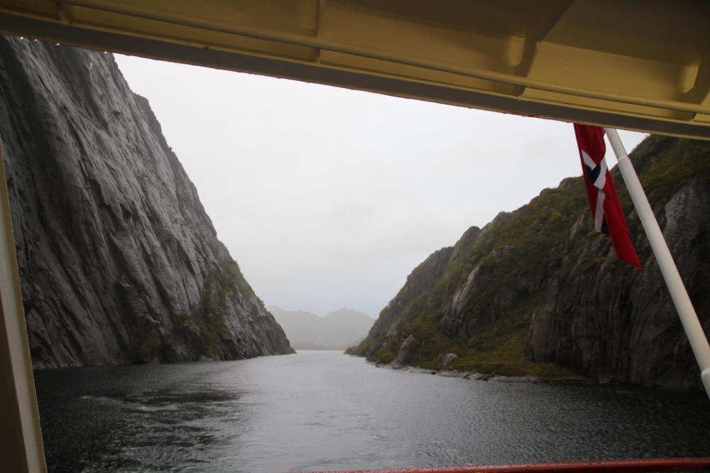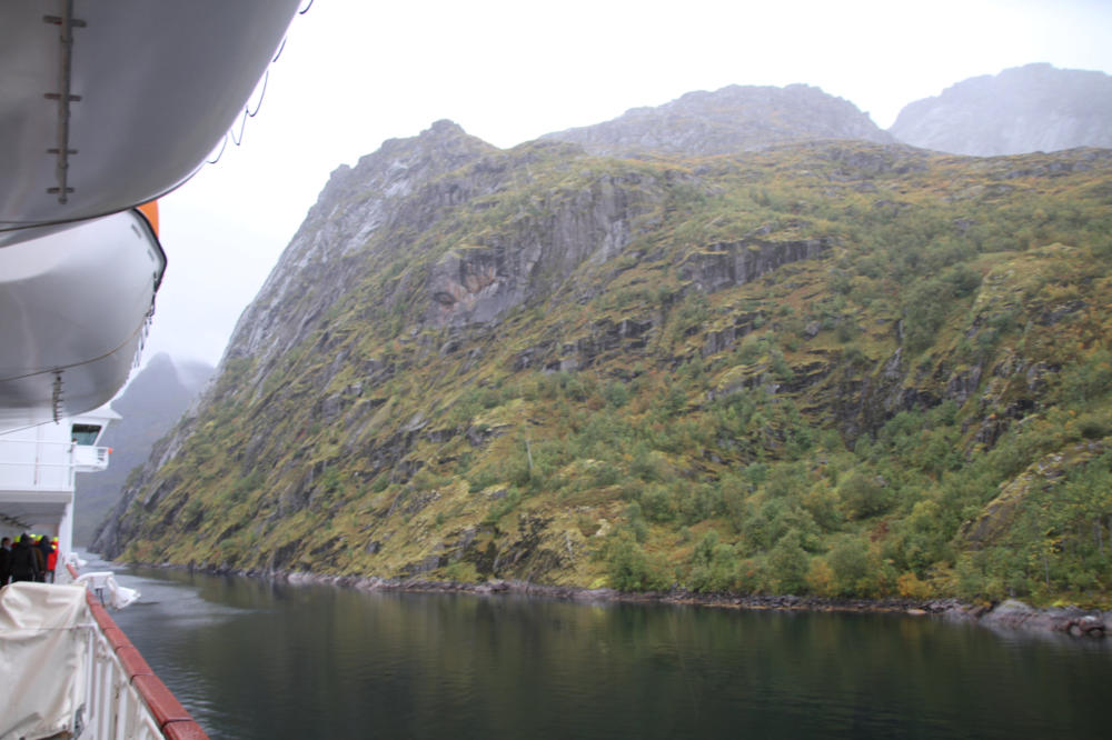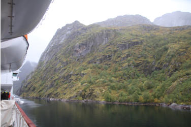 die Einfahrt in dem Fjord so eng ist, das man fast die Felsen berühren konnte. Das ´Schiff musste dann auf der Stelle drehen